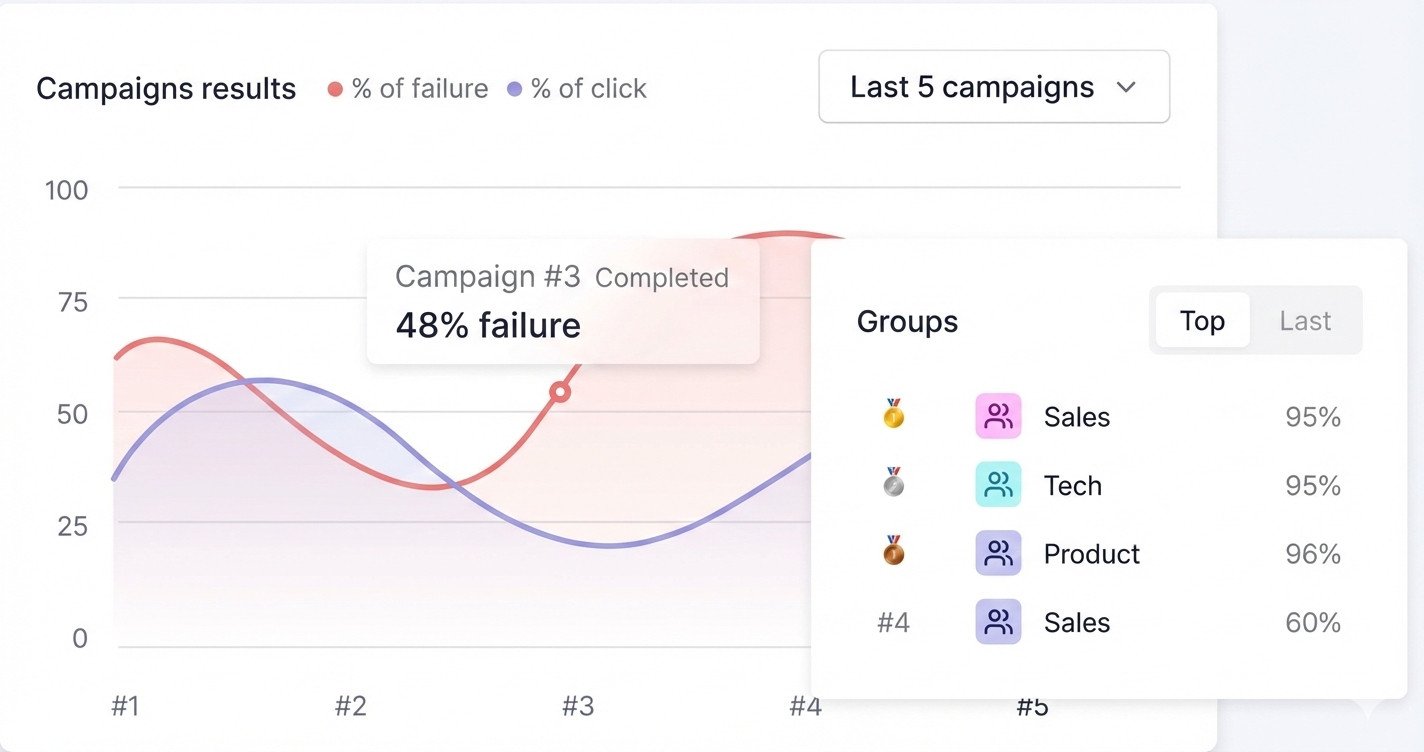 We provide comprehensive traffic logs and campaign results that track success and failure rates across different departments (Sales, Tech, Product, etc.), making it easy to identify and remediate internal security gaps.
